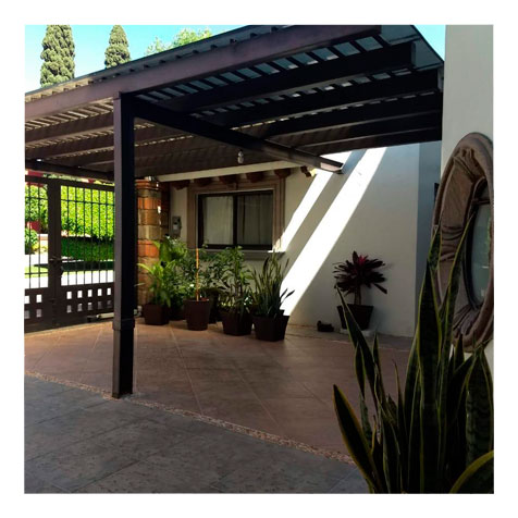 Estacionamiento con fuente y techado